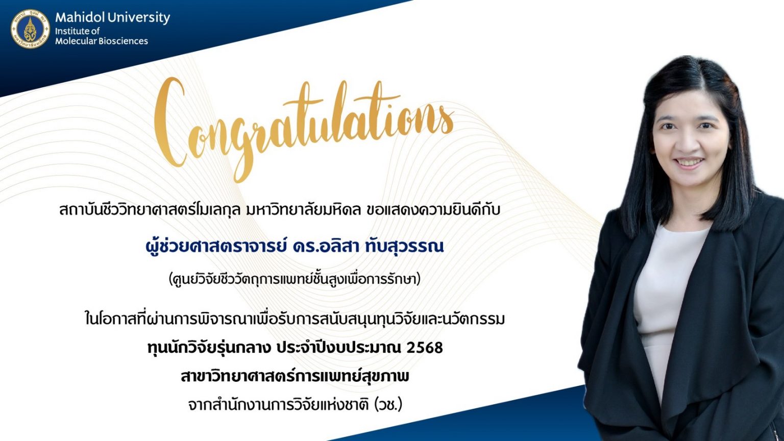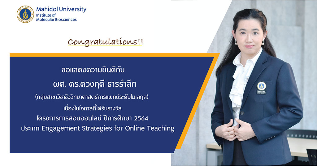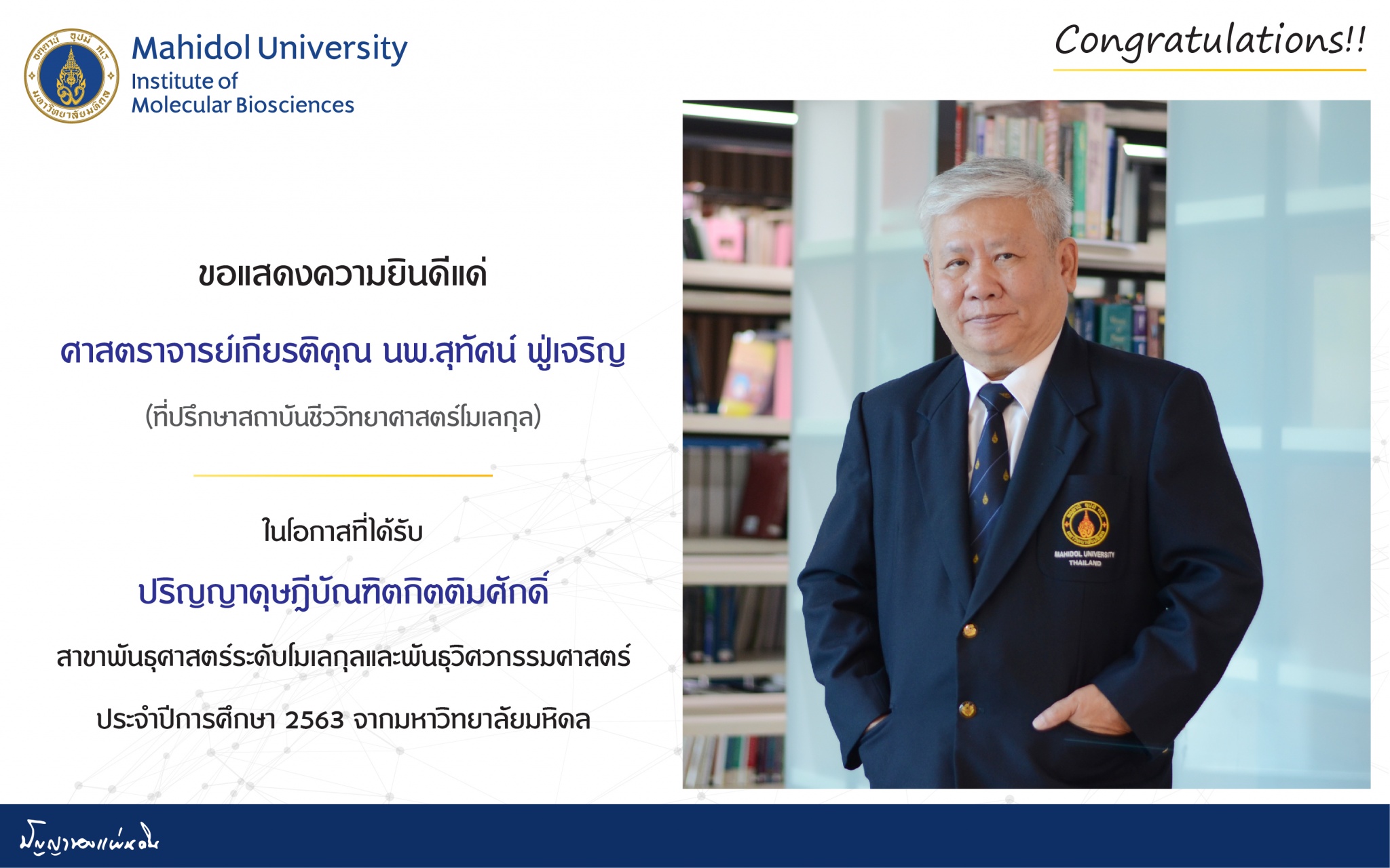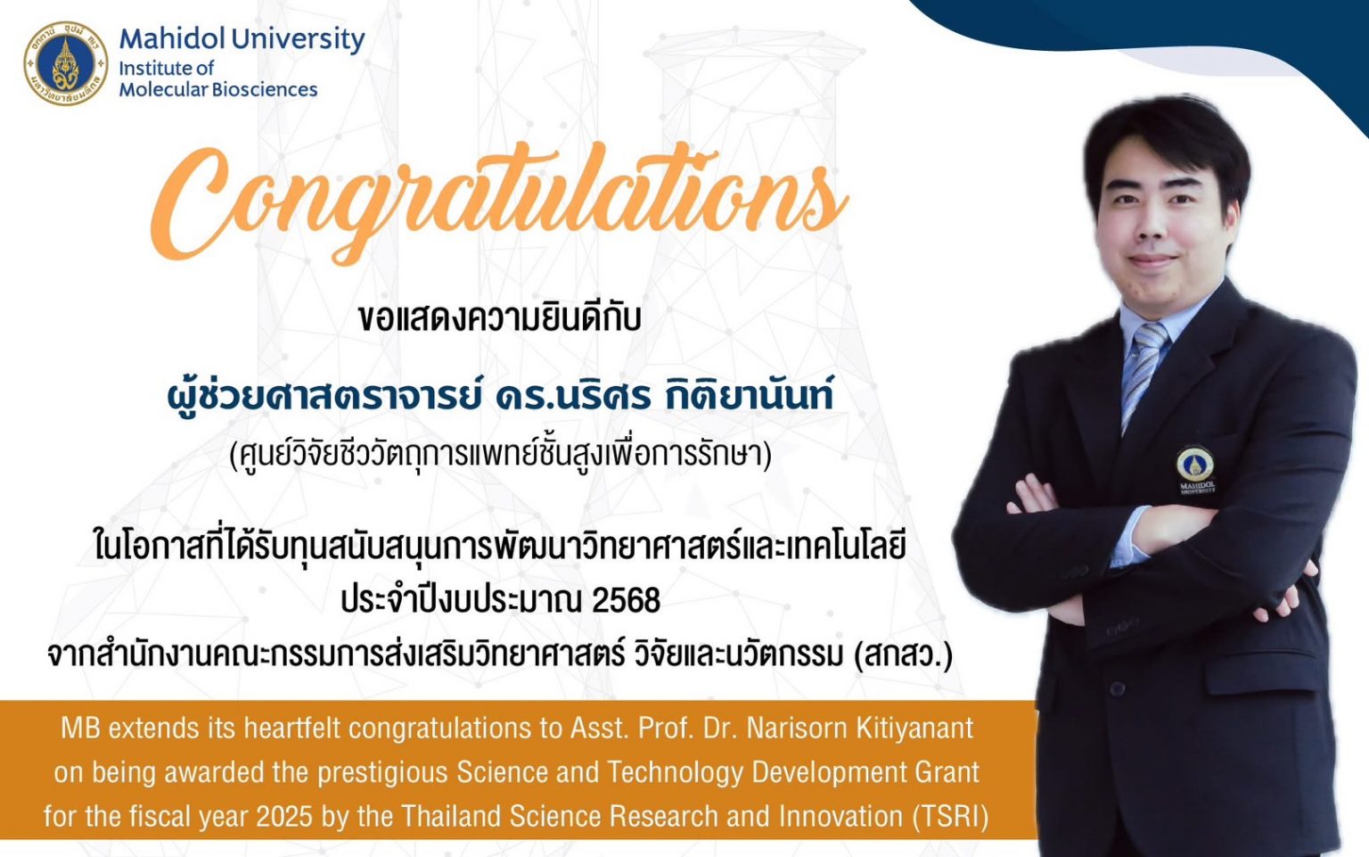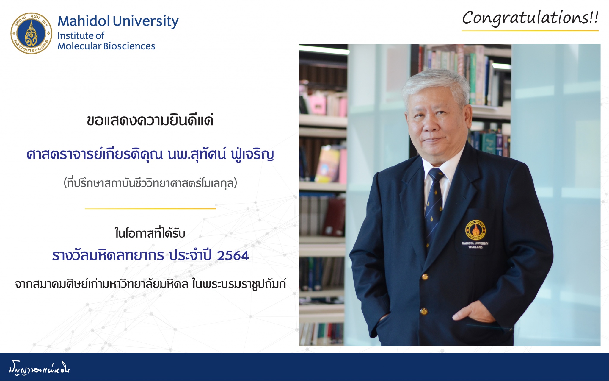 สถาบันชีววิทยาศาสตร์โมเลกุล มหาวิทยาลัยมหิดล ขอแสดงความยินดีกับ อาจารย์ ดร.เอกพจน์ คงกล้า โอกาสที่ได้รับรางวัล The Best Poster Presentation Awards จากการนำเสนอผลงานวิจัย เรื่อง “mRNA sequencing and analysis to uncover anti-neuroinflammatory regulation by human adipose stem cells–derived exosomes”