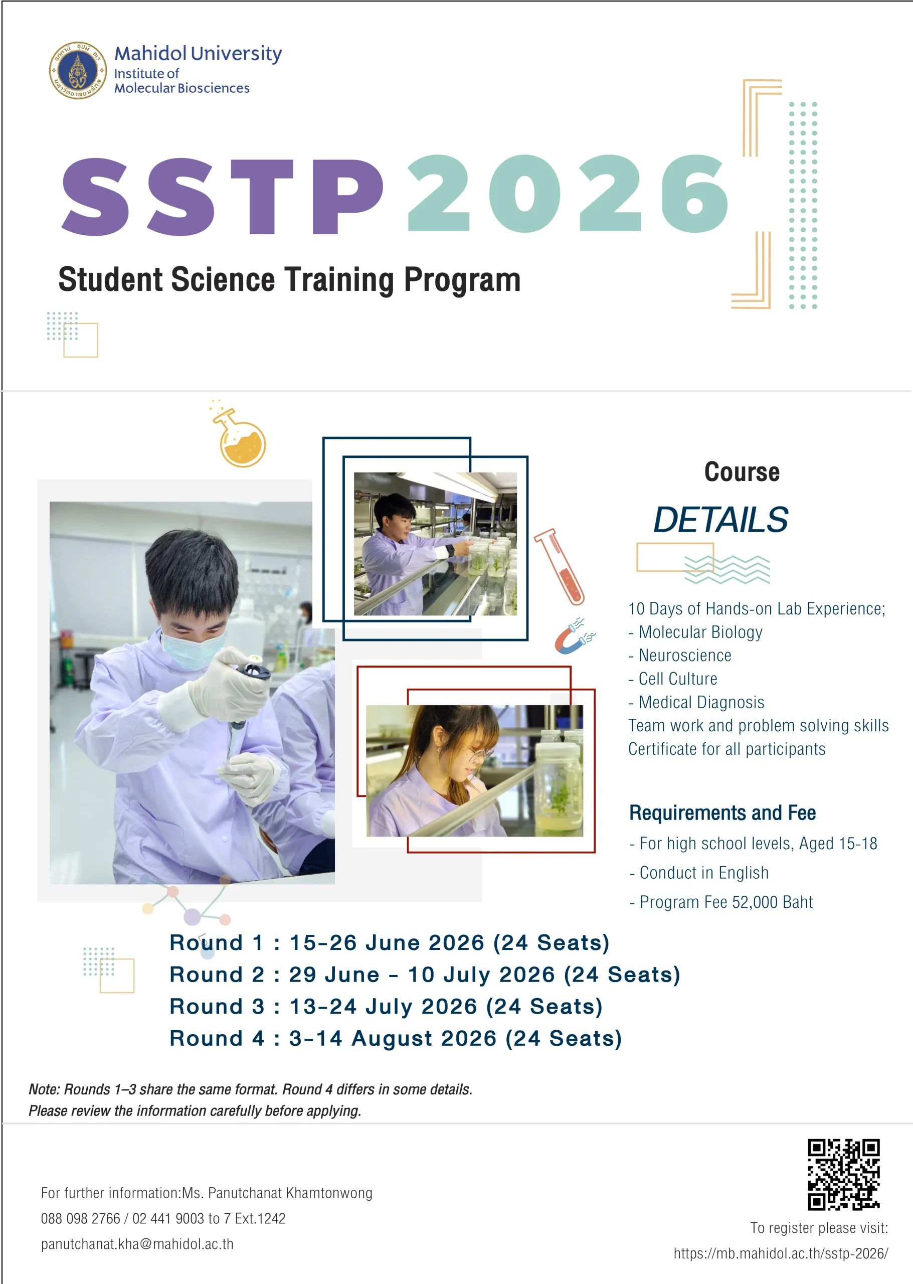 52,000 Baht (Includes handbook, lunch, snack, certificate, and Mahidol lab coat)
