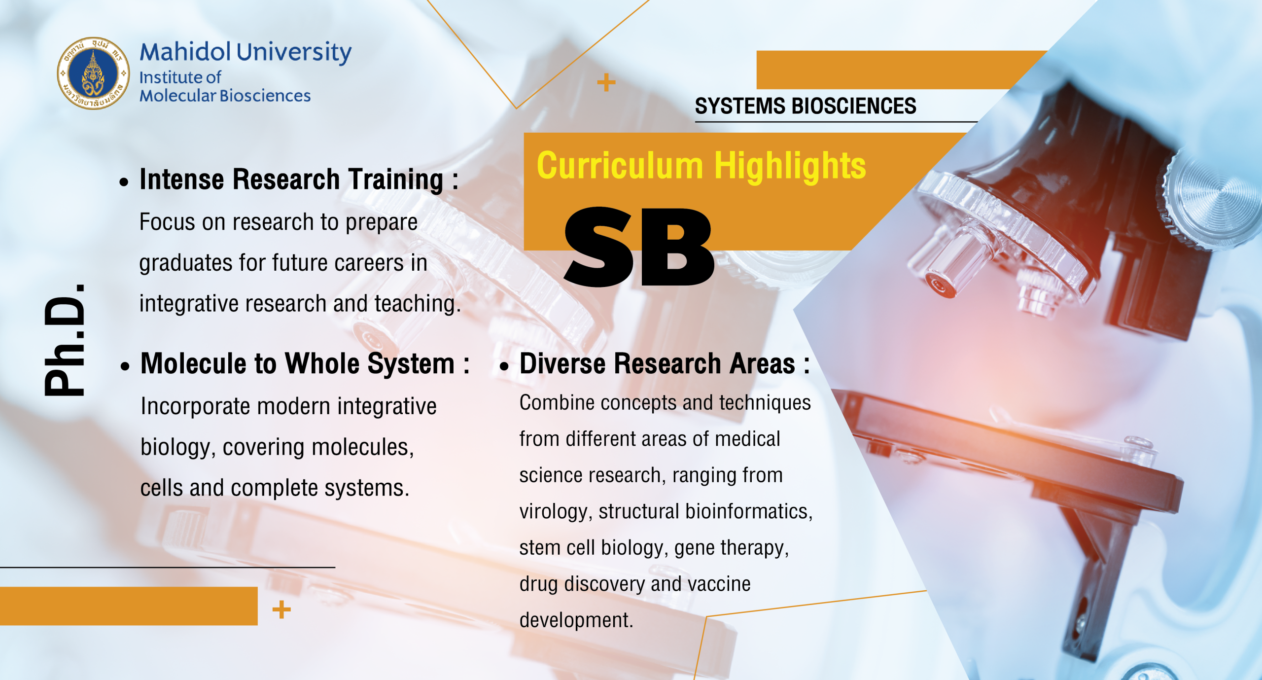 Holders of a science degree in biology, biochemistry, chemistry, genetics, agricultural sciences, medical sciences, medical technology, veterinary sciences, dentistry, and other related fields, who wish to attend the program full-time as a regular student, are welcome to submit an application to the Faculty of Graduate Studies, Mahidol University.