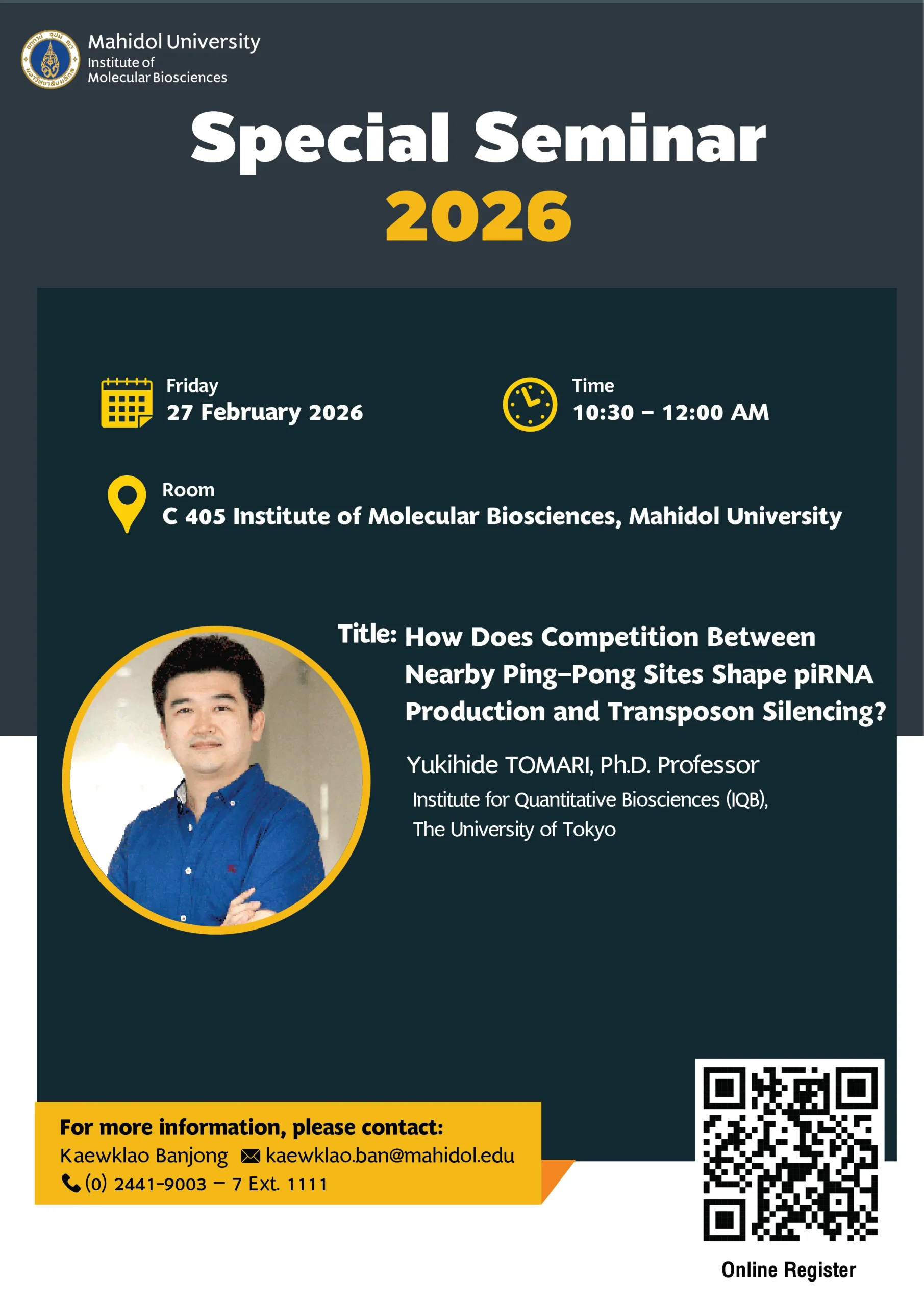 The Institute of Molecular Biosciences respectfully invites interested individuals to attend a special seminar on the topic: "How Does Competition Between Nearby Ping-Pong Sites Shape piRNA Production and Transposon Silencing?"